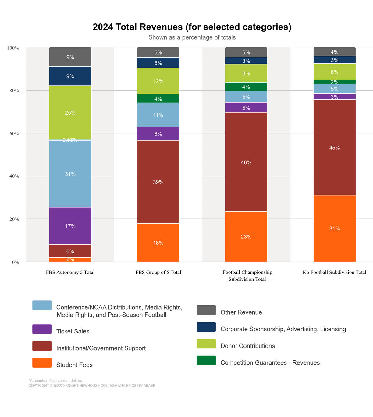 Below are data and graphs from the Knight-Newhouse College Athletics Database that describe “Where the Money Comes From” (Revenues) and “Where the Money Goes” (Expenses), in Division I college sports):